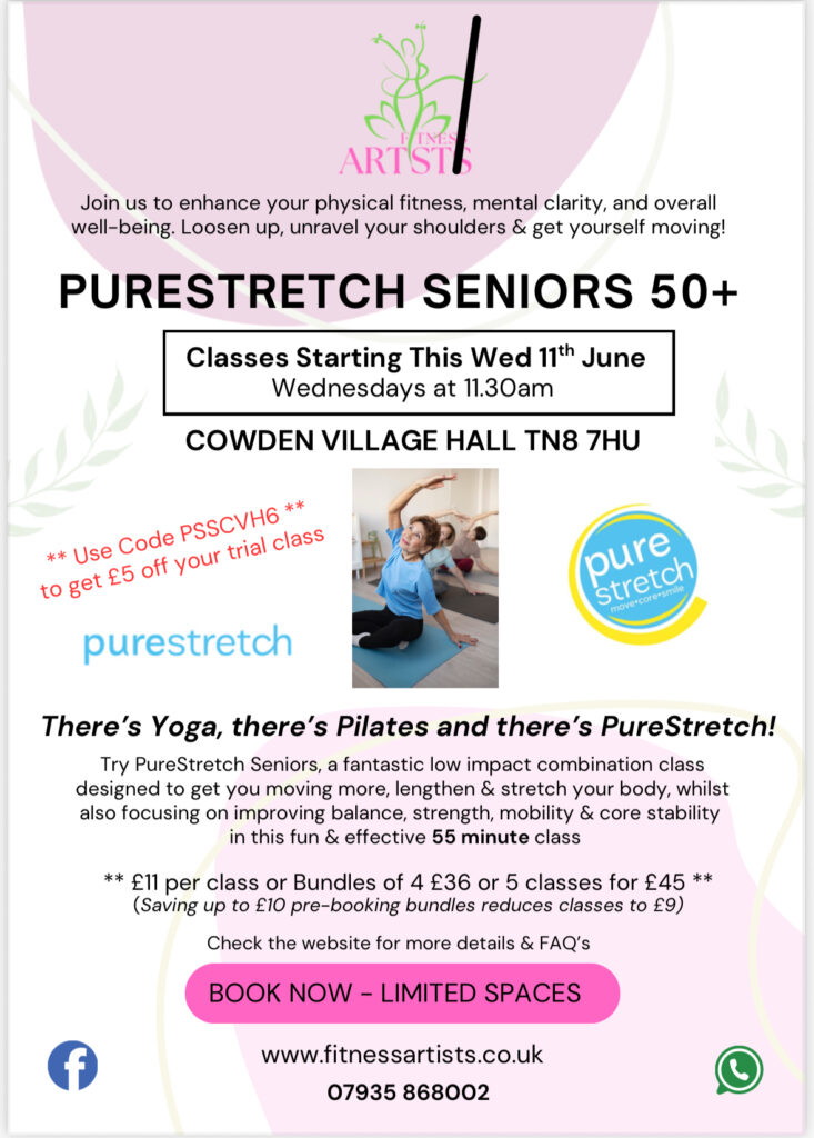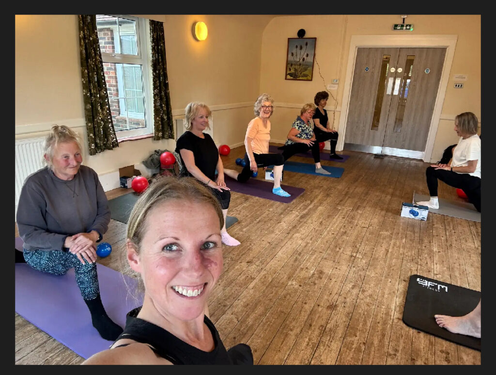 Pilates classes in the Club Room each Wednesday at 5:30 pm till 6:30 pm. £12 to drop in or £50 for 5, and people can book by contacting Catherine by email: personaltrainercatherine@gmail.com or WhatsApp 07418626404